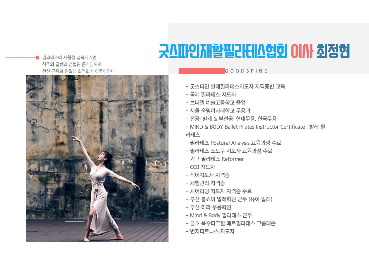 📢 굿스파인재활필라테스협회 - 최정현 번지 피트니스 지도자 교육이사
